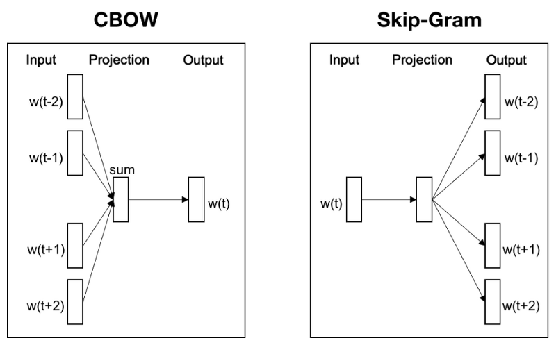 CBOW (Continuous Bag of Words) - 주변 단어로 중심 단어 예측 - 작은 데이터셋에 적합